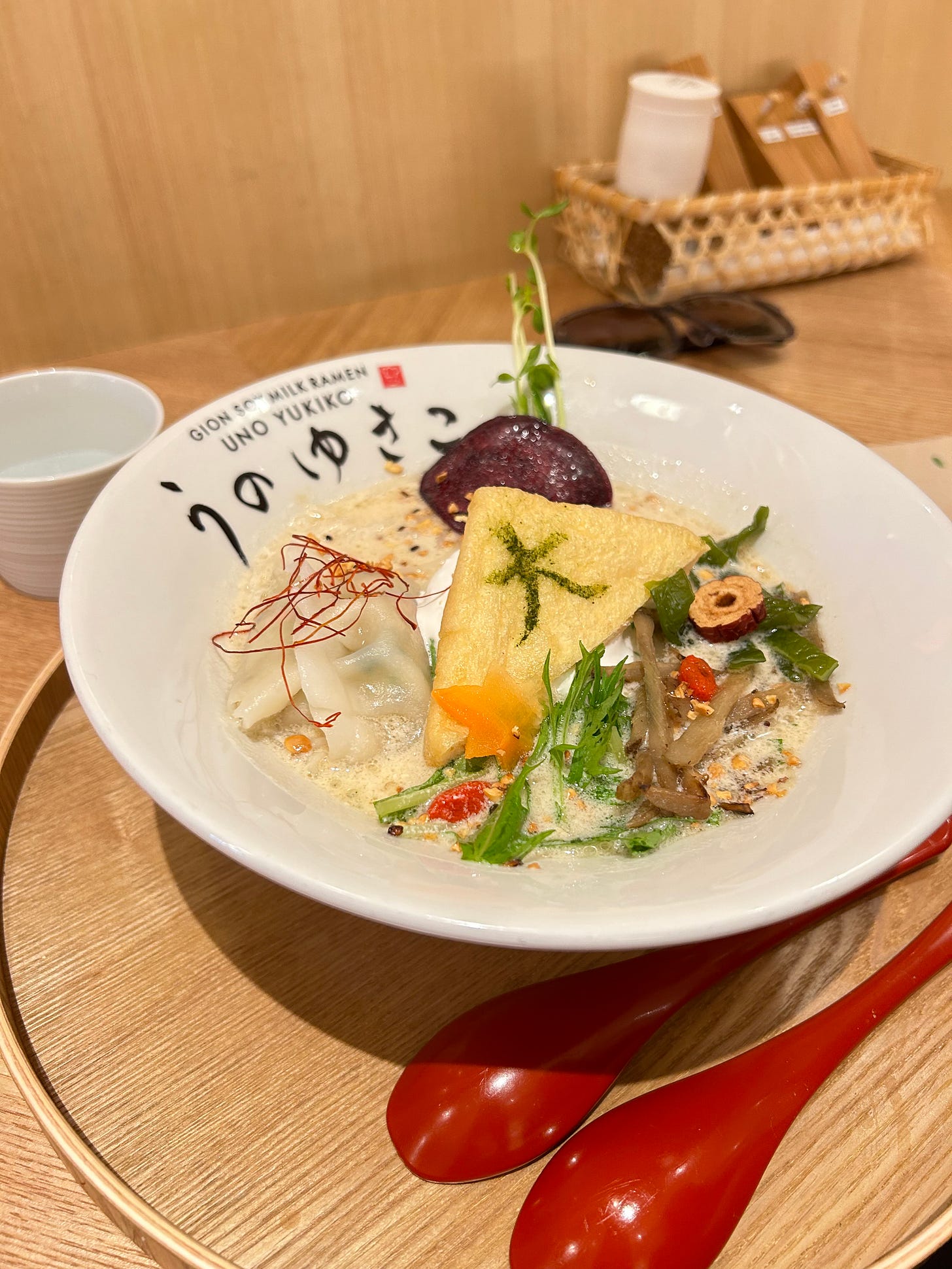 This tiny 100% vegan and gluten-free restaurant can be hard to miss because it’s in front of a laundromat. I was so grateful to eat ramen and dumplings again! Uno Yokiko is known as the world’s first “Soy milk Patissiere” and the broth in this ramen was perfection.