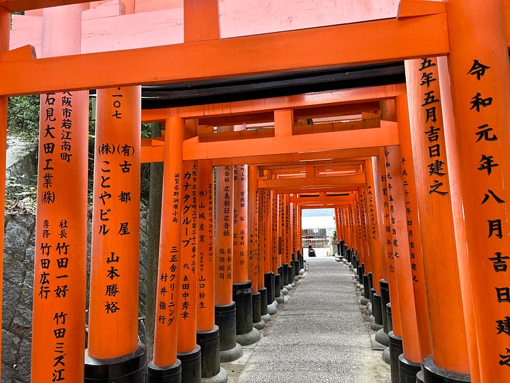 And the morning of our flight back, he woke up early and visited Fushimi Inari Taisha to see the Torii gates and the Sagano Bamboo Forest. This was on my Kyoto list too, but I just couldn’t rally that early before two airplane rides!
